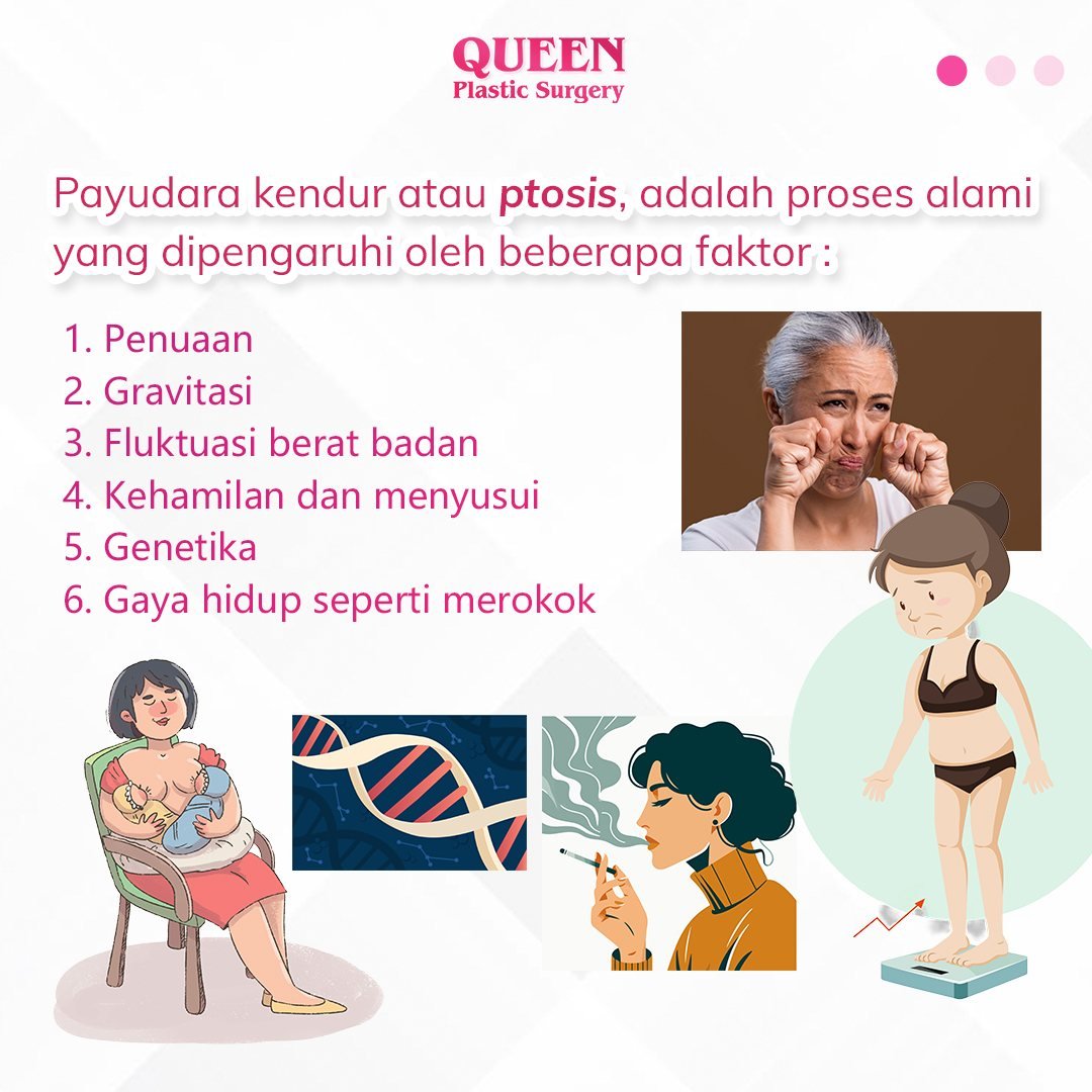 Payudara kendur, atau ptosis, adalah proses alami yang dipengaruhi oleh beberapa faktor, yaitu :